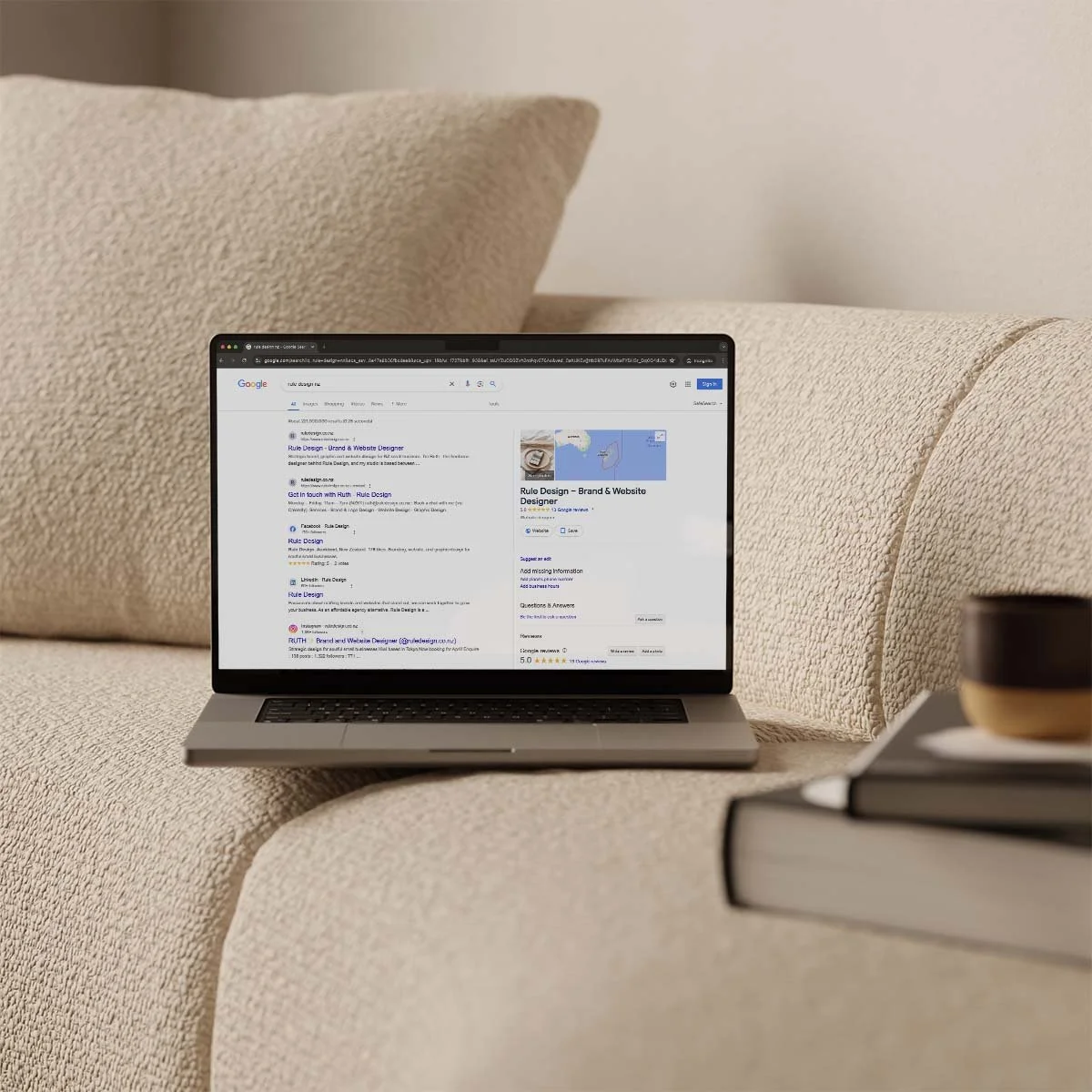 In location-based searches (like, ‘Rule Design NZ’) Google Business profiles will often be displayed on the right-hand side of a search results pages on desktop, or at the top of the page on mobile. This is prime real estate!